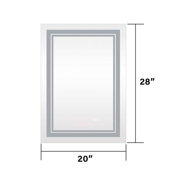 20 in. W x 28 in. H Rectangular Frameless LED Wall Mounted Bathroom Vanity Mirror Anti-Fog with Touch Switch in Silver