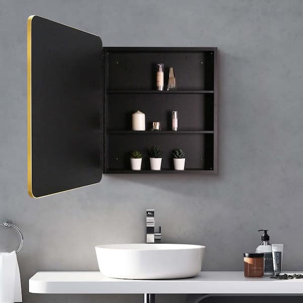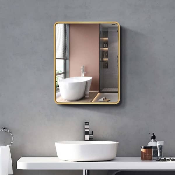 20 in. W x 28 in. H Rectangular Gold Metal Bathroom Medicine Cabinet with Mirror, Vanity Mirrors Recess or Surface Mount