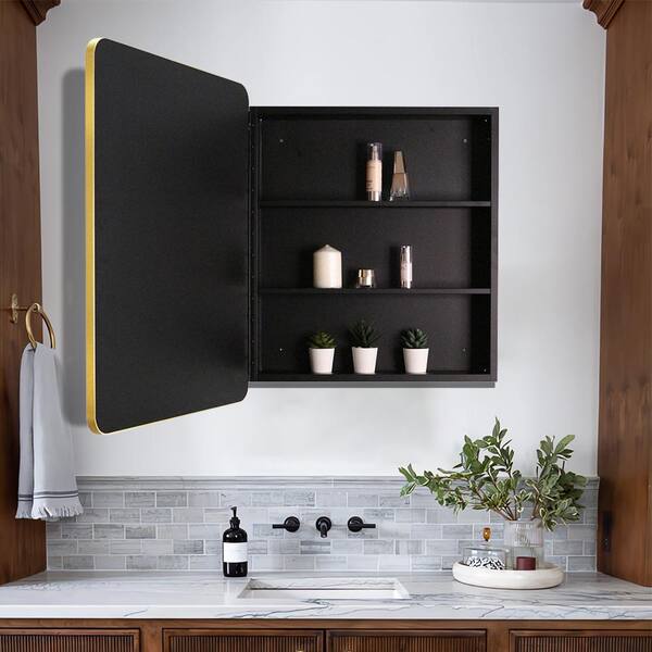 20 in. W x 28 in. H Rectangular Golden Iron Recessed or Surface Mount Medicine Cabinet with Mirror