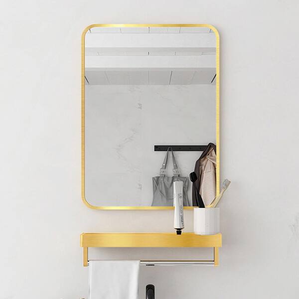 20 in. W x 28 in. H Rectangular Metal Framed Wall Bathroom Vanity Mirror in Gold