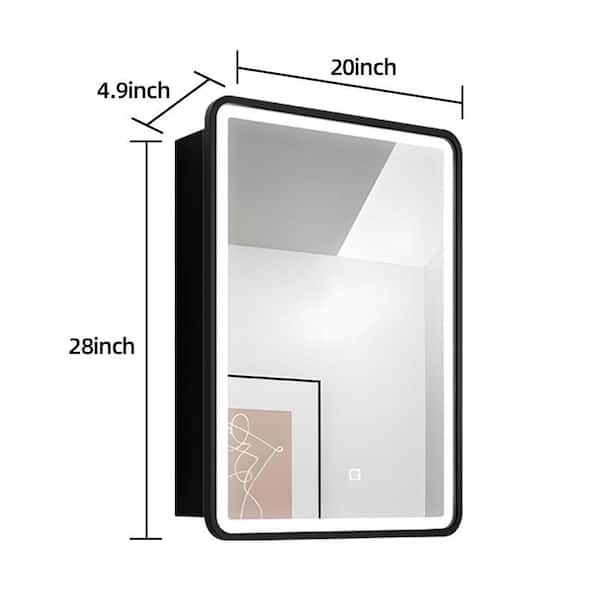 20 in. W x 28 in. H Rectangular Metal Medicine Cabinet with Mirror, LED Lighted Wall Mounted Bathroom Mirror Cabinet