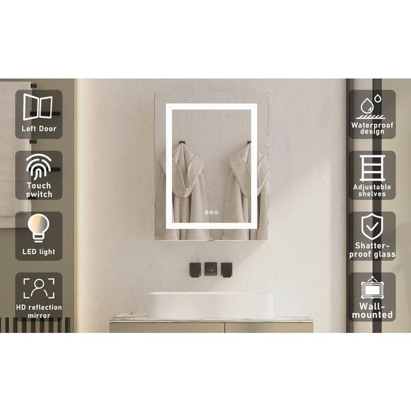20 in. W x 28 in. H Rectangular Silver Recessed/Surface Mount Wall Medicine Cabinet with Mirror