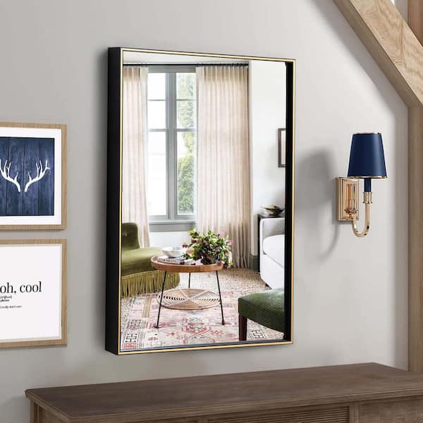 20 in. W x 28 in. H Rectangular Steel Framed Wall Mount Bathroom Vanity Mirror in Gold