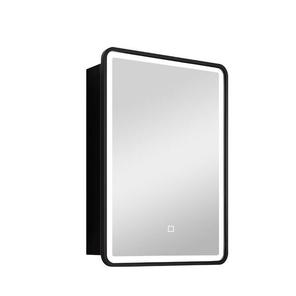 20 in. W x 28 in. H Rectangular Surface Mount Black Bathroom Medicine Cabinet with Mirror with LED Light and Anti-Fog