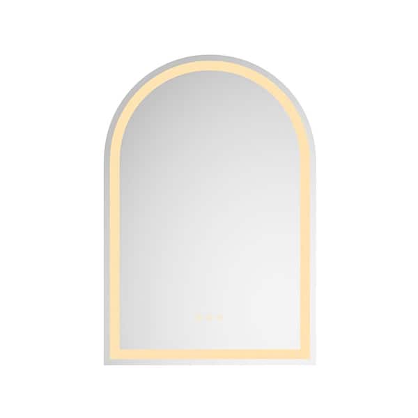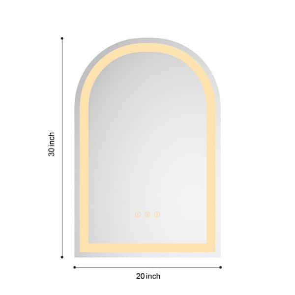 20 in. W x 30 in. H Arched Frameless Wall-Mount Bathroom Vanity Mirror in White