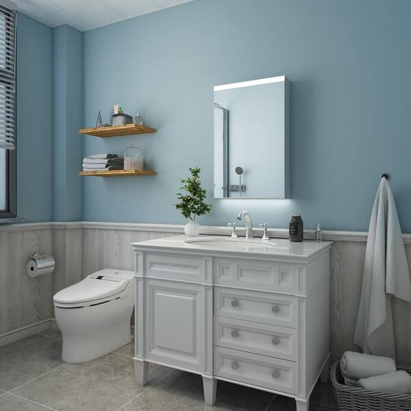 20 in. W x 30 in. H Medium Rectangular Silver Anti-Fog Frameless Recessed Surface Mount Medicine Cabinet with Mirror