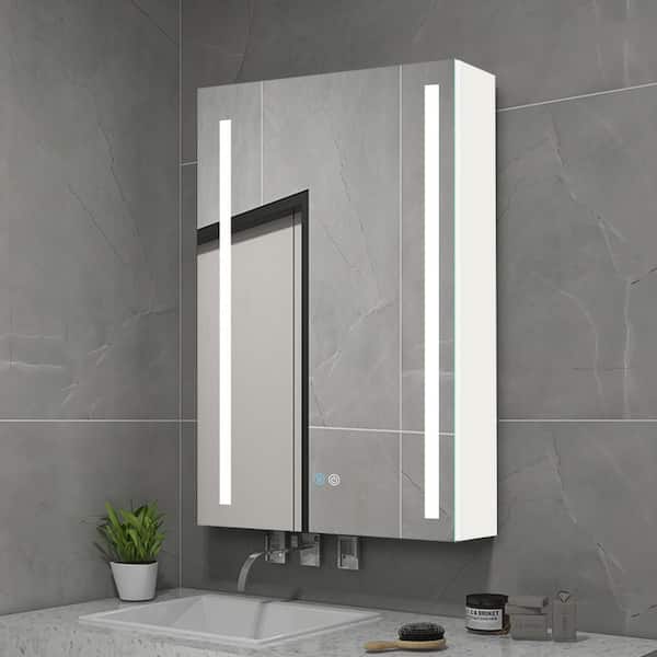 20 in. W x 30 in. H White Rectangular LED Lighted Aluminum Medicine Cabinet with Mirror Left Open