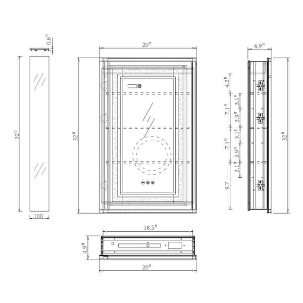 20 in. W x 32 in. H LED Rectangular Surface Mounted Aluminum Medicine Cabinets with Mirror in Black