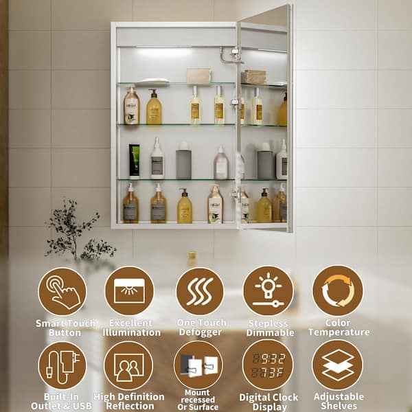 20 in. W x 32 in. H Rectangular Silver Aluminum Recessed/Surface Mount Right Dimmable Medicine Cabinet with Mirror