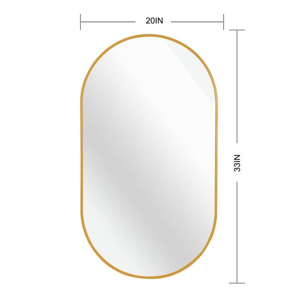 20 in. W x 33 in. H Oval Aluminium Alloy Framed Wall Mount Bathroom Vanity Mirror in Gold