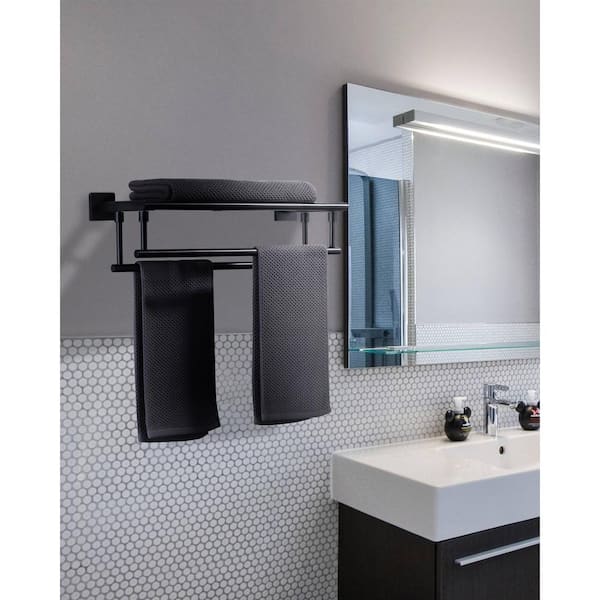 20 in. Wall Mounted Double Towel Bar in Matte Black