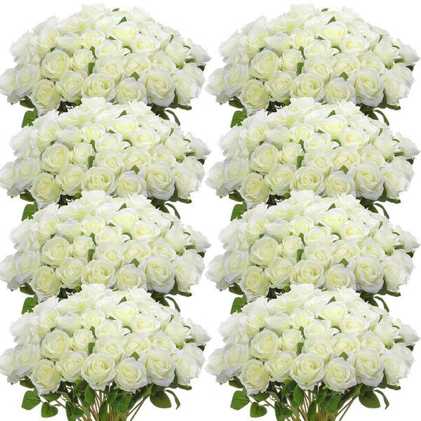20 in. White Indoor Artificial Rose Flower for Decoration 120 Pcs