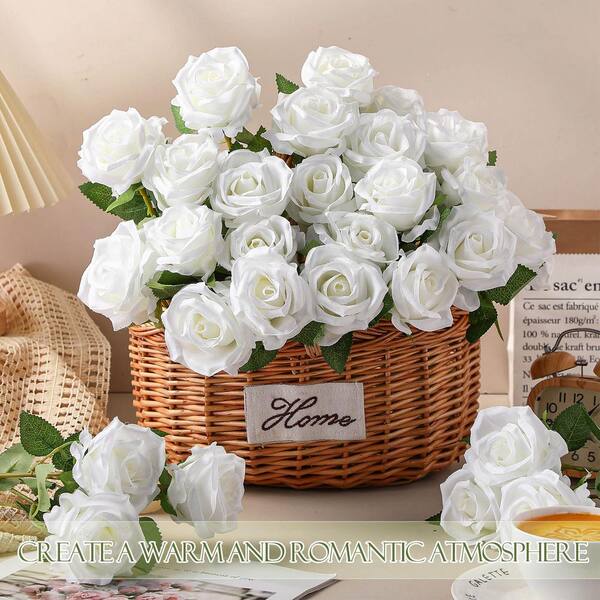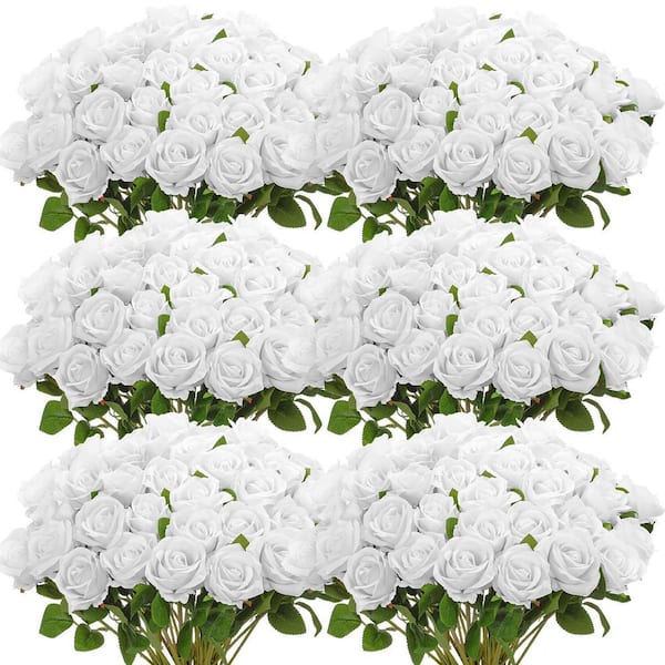 20 in. White Outdoor Artificial Rose Plastic Flower for Home 50 Piece