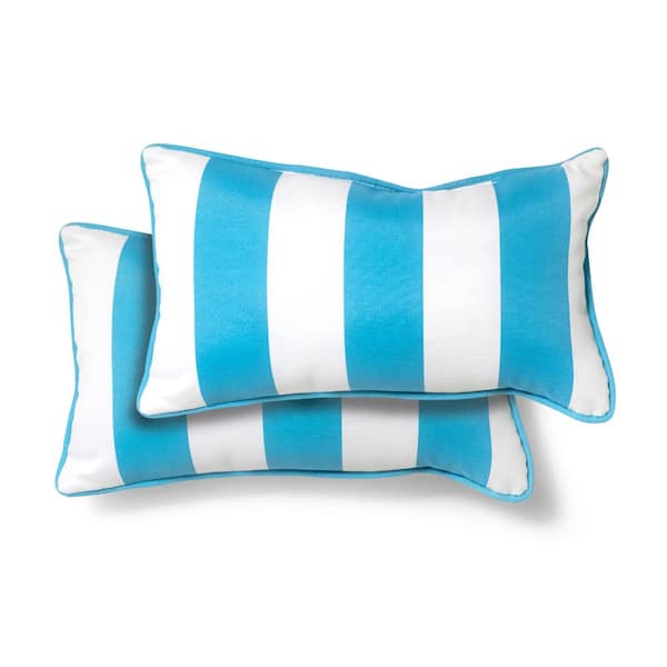 20 in. x 12 in. Turquoise Cabana Outdoor Lumbar Pillow (2 Pack)