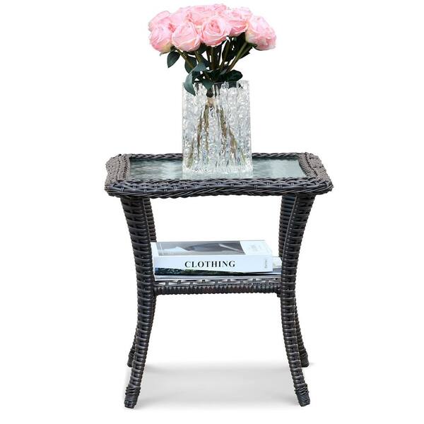 20 in. x 20 in. Brown Outdoor Side Table Coffee Bistro Table All-Weather Patio Square Storage End Table