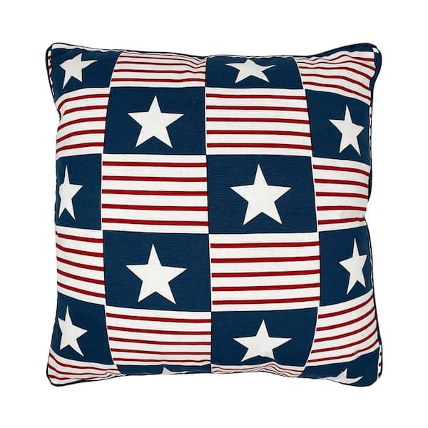 20 in. x 20 in. Patriotic Stars and Stripes Red White and Blue Pillow