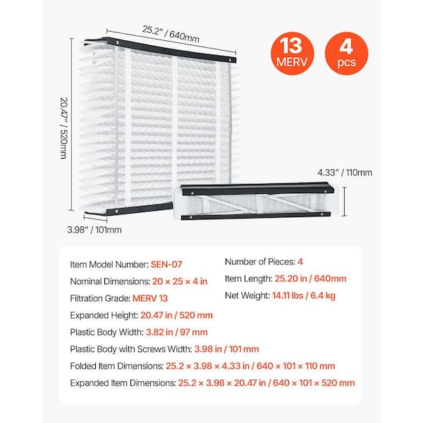 20 in. x 25 in. x 4 in. Furnace Filter, MERV 13 HVAC Ac Filters, 12-Month Electrostatic Pleated Air Conditioner Filters