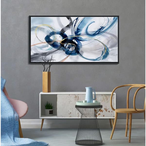 20 in.x40 in. Blue and White Modern Abstract Framed Canvas Wall Art for Home and Office Decor