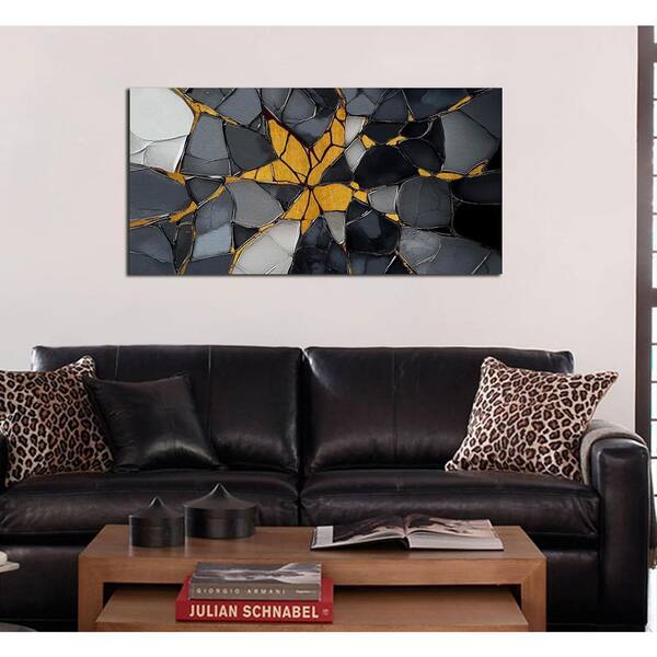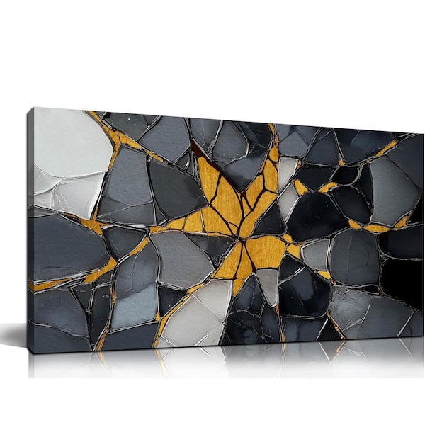 20x40 Large Framed Black and White Shards Abstract Canvas Wall Art - Modern Decor for Living Room, Bedroom and Office