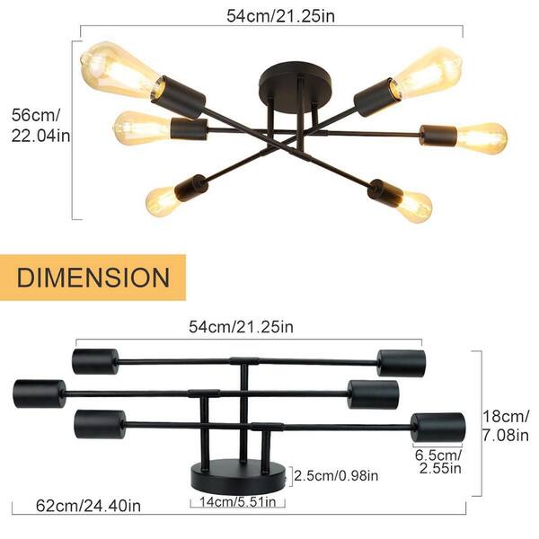 21.25 in. 6-Light Matte Black Semi Flush Mount Ceiling Light with Adjustable Arms