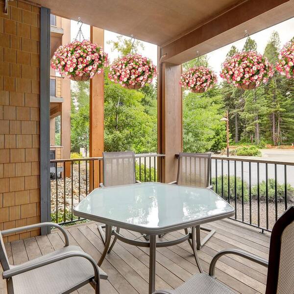 21.3 in. Pink Outdoor Artificial Hanging Petunia Flowers in Brown Basket