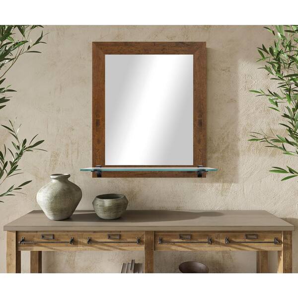 21.5 in. W x 25.5 in. H Rectangle Light Walnut Vertical Framed Mirror With Tempered Glass Shelf/Black Bracket