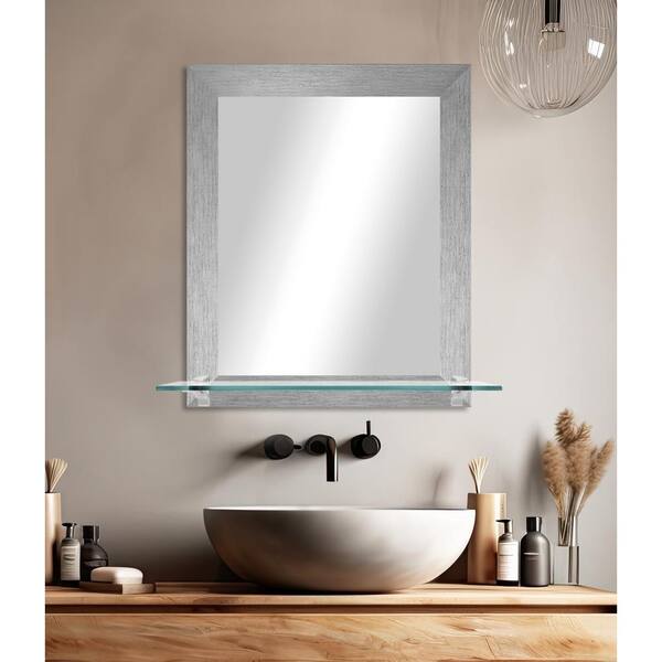 21.5 in. W x 25.5 in. H Rectangle Silver Vertical Mirror With Tempered Glass Shelf/Chrome Brackets