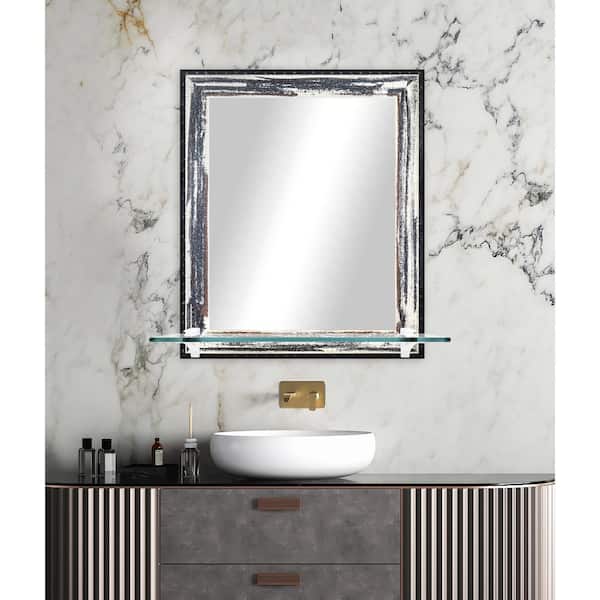 21.5in. W x 25.5in. H Framed Ivory/Navy Vertical Mirror with Tempered Glass Shelf and White Brackets