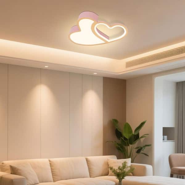 21.65 in Pink Creative Heart Shape Flush Mount Ceiling Light with Acrylic Shade and LED Light Source for Kids Room