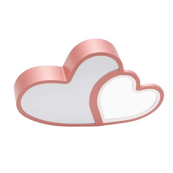 21.65 in Pink Creative Heart Shape Flush Mount Ceiling Light with Acrylic Shade and LED Light Source for Kids Room