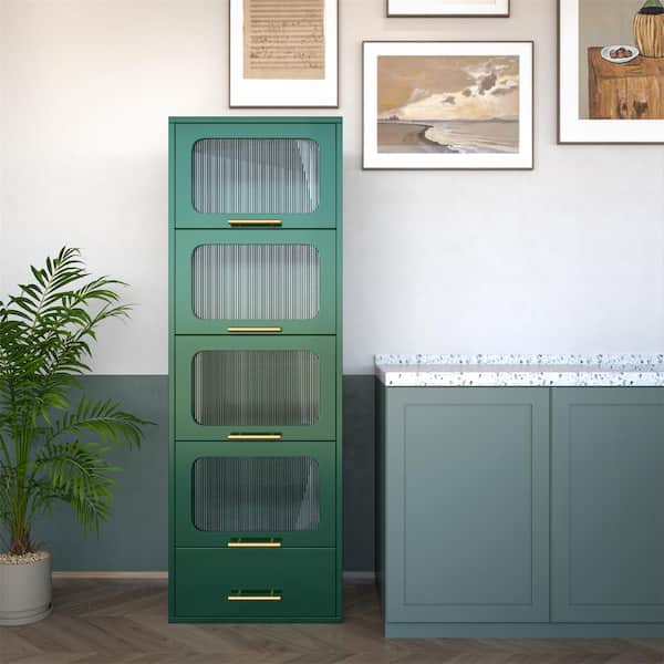 21.65 in. W x 15.75 in. D x 63 in. H Green Linen Cabinet with 4 Transparent Flip Doors and Drawer