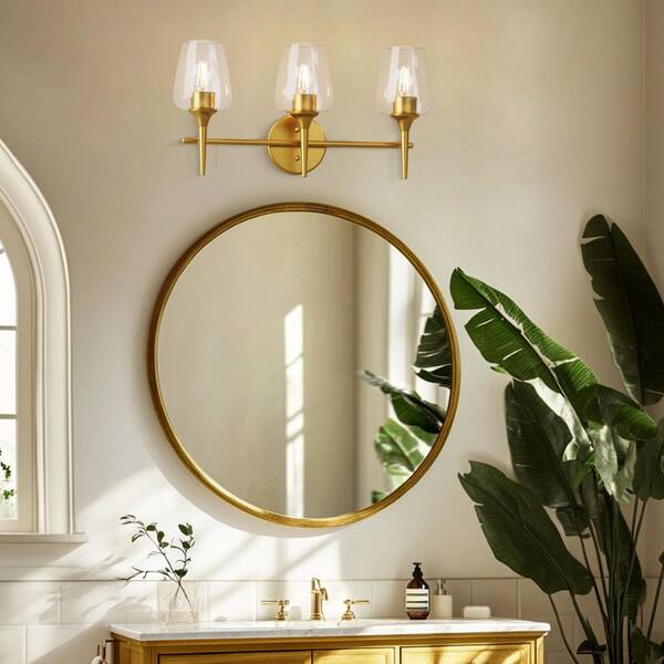 21.69 in. 3-Light Gold Vanity Light with Clear Glass for Bathroom, Hallway, Bedroom with E26 Socket