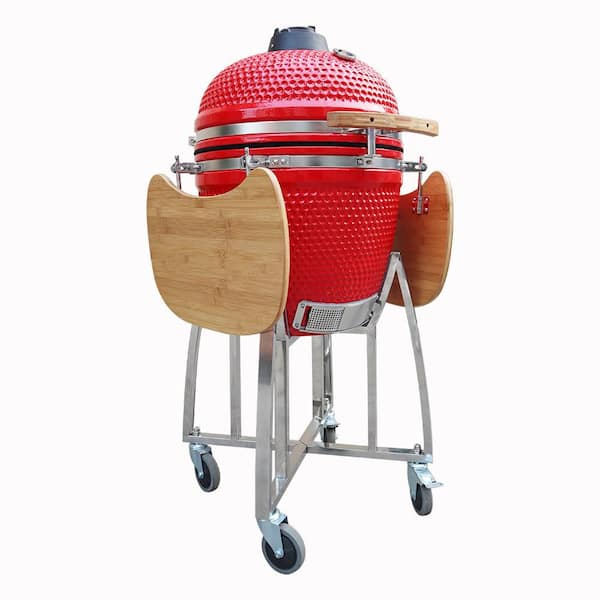 21 in. Comfortbilt Kamado Charcoal Grill in Red with Folding Side Tables