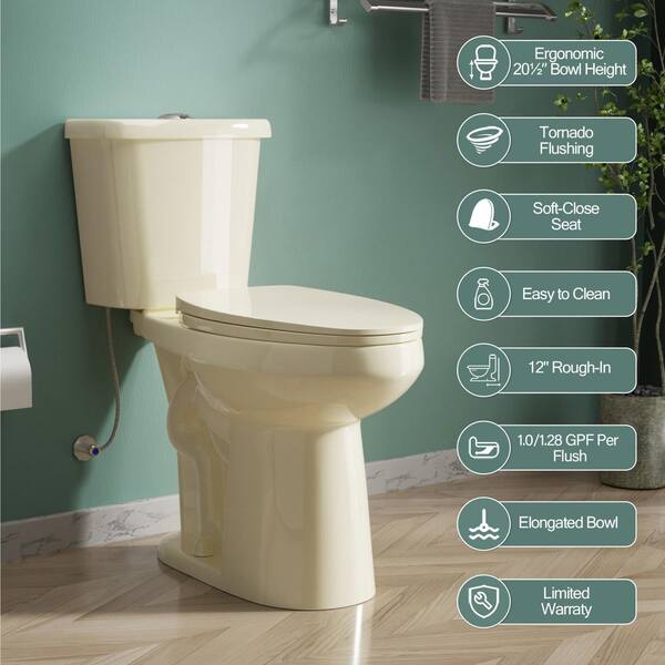 21 in Extra Tall Elongated Toilet Bone Dual Flush 1.0/1.28 GPF 2-Piece Toilet with Soft Seat Included Modern Design