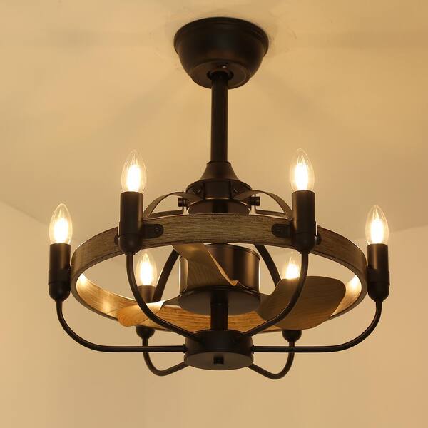 21 in. Indoor Black Ceiling Fan with Light and Remote Control Wood Metal Blades