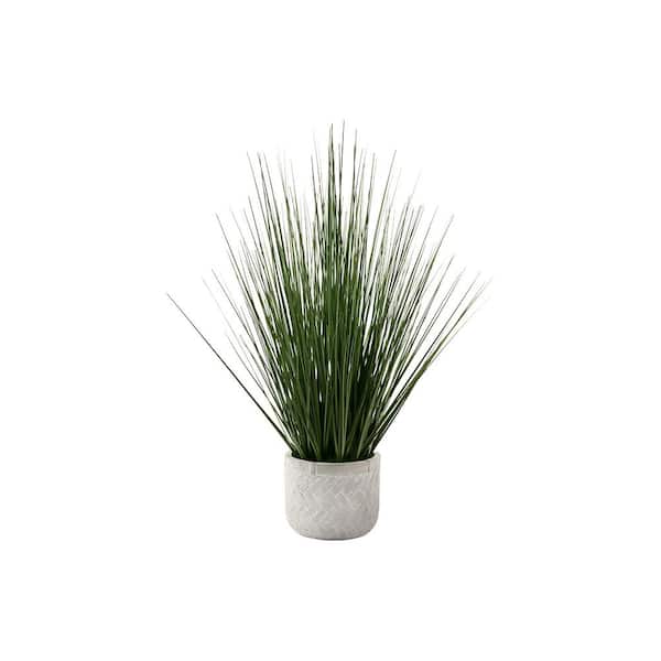 21 in. Tall Artificial Grass Plant in White Cement Pot-Real Touch Faux Greenery, Low Maintenance Decorative Accent