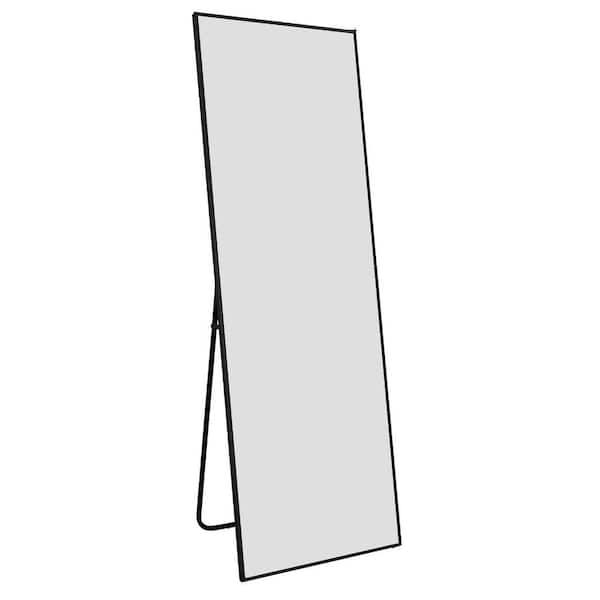 21 in. W x 64 in. H L Rectangular Aluminum Framed Wall-Mounted Bathroom Vanity Mirror in Black with Standing Holder