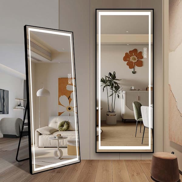 21 in. W x 64 in. H LED Rectangular Framed Wall Bathroom Vanity Mirror in Black