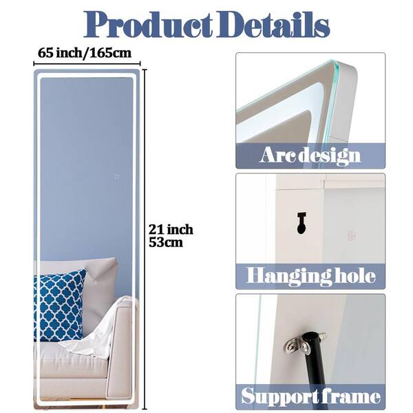 21 in. W x 65 in. H Rectangular Aluminum Framed LED Wall Mount or Floor Standing Modern Bathroom Vanity Mirror