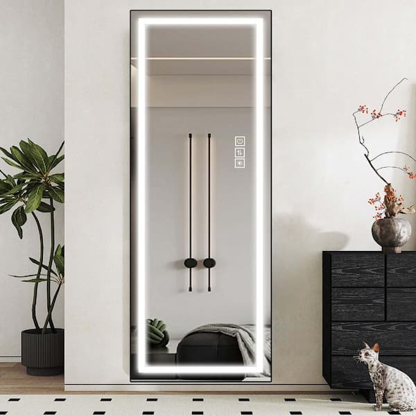 21 in. W x 65 in. H Rectangular Framed Wall Bathroom Vanity Mirror in Black, LED Mirror Full Length Mirror with Lights