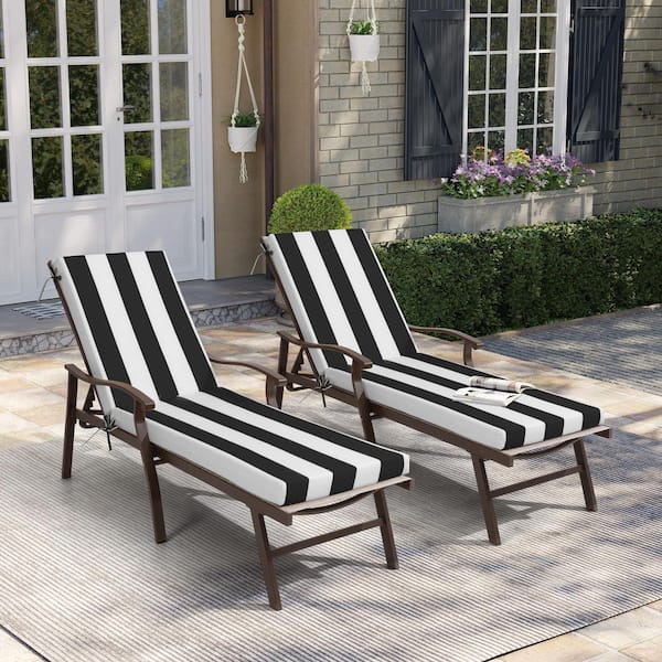 21 in. x 72 in. Polyester 2-Piece Deep Seating Outdoor Chaise Lounge Cushion in Black and White Stripe