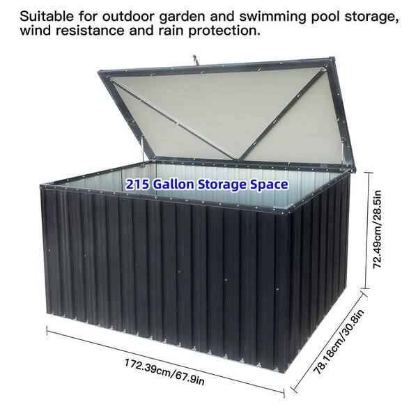 215 Gal. Black Metal Outdoor Storage Deck Box with Lockable Lid