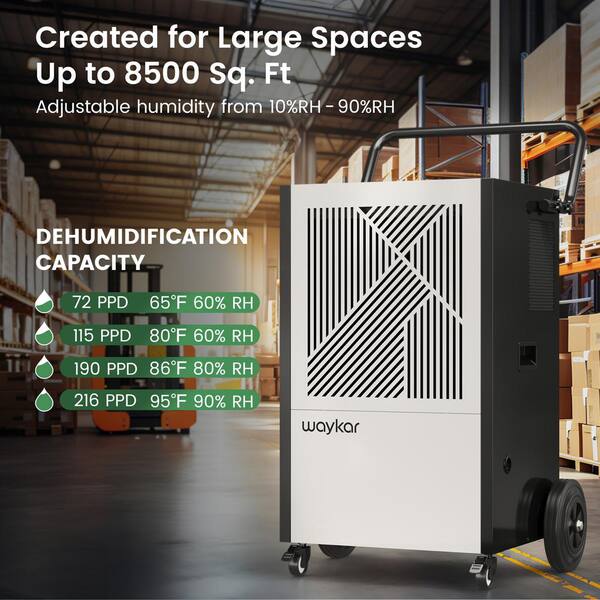 216 pt. Maximum Coverage Area 8500 sq. ft. Dehumidifier in. White Pumped