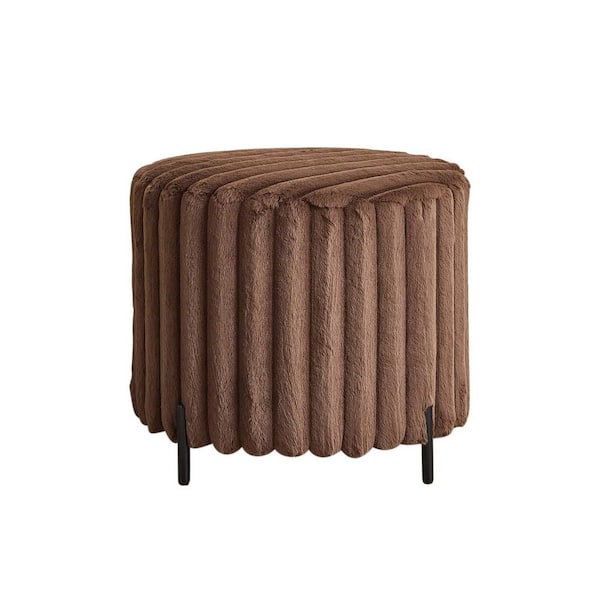 22.05 in. Brown Faux Fur Round Ottoman Soft Foot Rest Foot Stool Ottoman Pouf for Living Room Bedroom