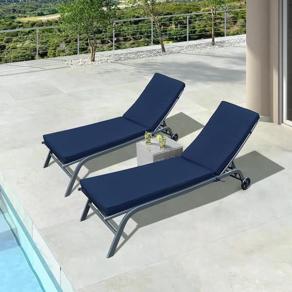 22.05 in. x 74.4 in. 2-Piece Outdoor Lounge Chair Replacement Cushion Navy Blue