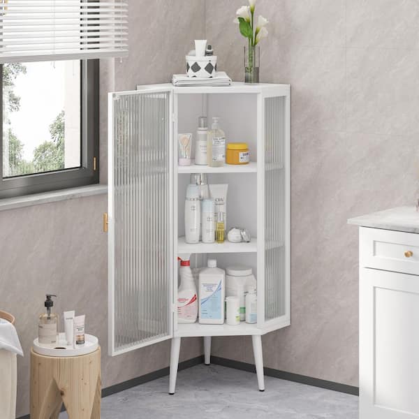 22.25 in. W x 15.75 in. D x 43.3 in. H in White Unassembled Metal Floor Coner Bath Cabinet with Tempered Glass Doors