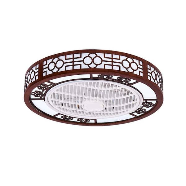 22.44 in. LED Indoor Modern Brown Round 3-Speed Flush Mount Ceiling Fan with Remote