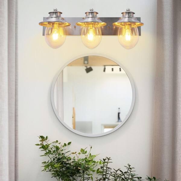 22.75 in. 3-Light Modern Silver LED Bathroom Vanity Light with High Transparency Glass Cover