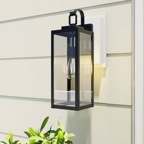 22 in. 1-Light Matte Black Hardwired Outdoor Wall Lantern Modern Sconce with Clear Glass (2-Pack)