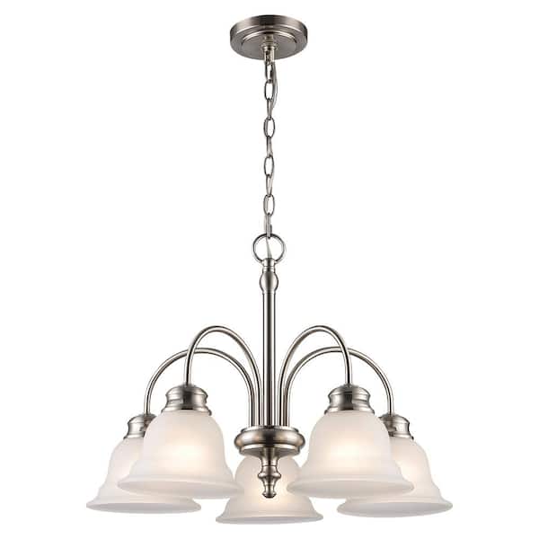 22 in. 5-Light Brushed Nickel Down Light Chandelier with Frosted Glass Shades